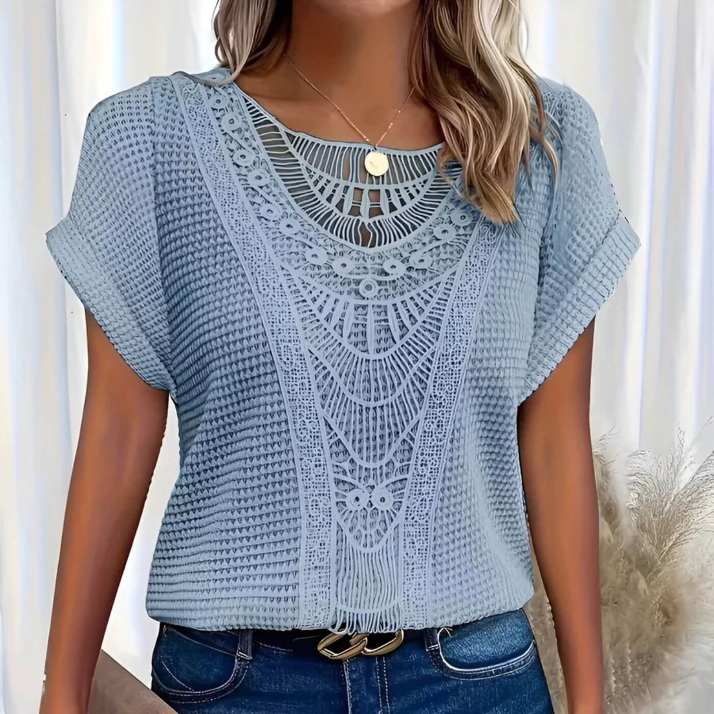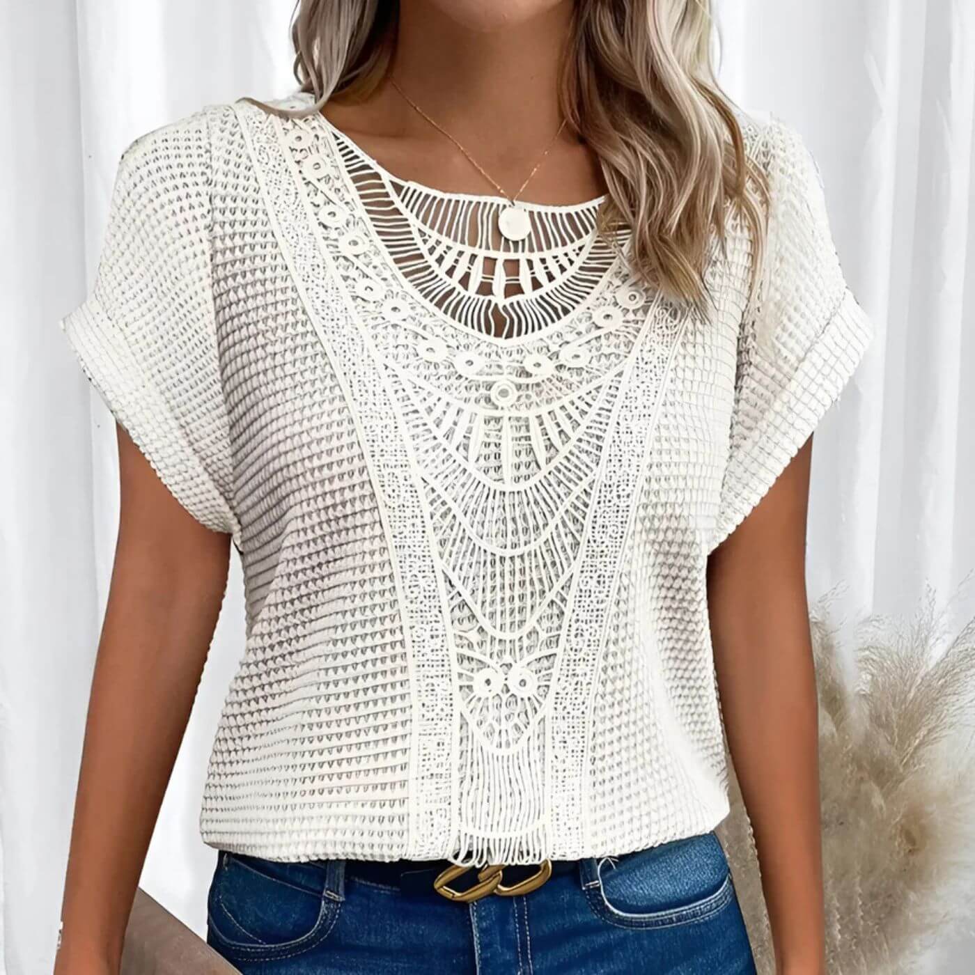 Unik detaljrikdom: De fine utskjæringene gir plagget et bohemsk, personlig preg – uten å overdrive.